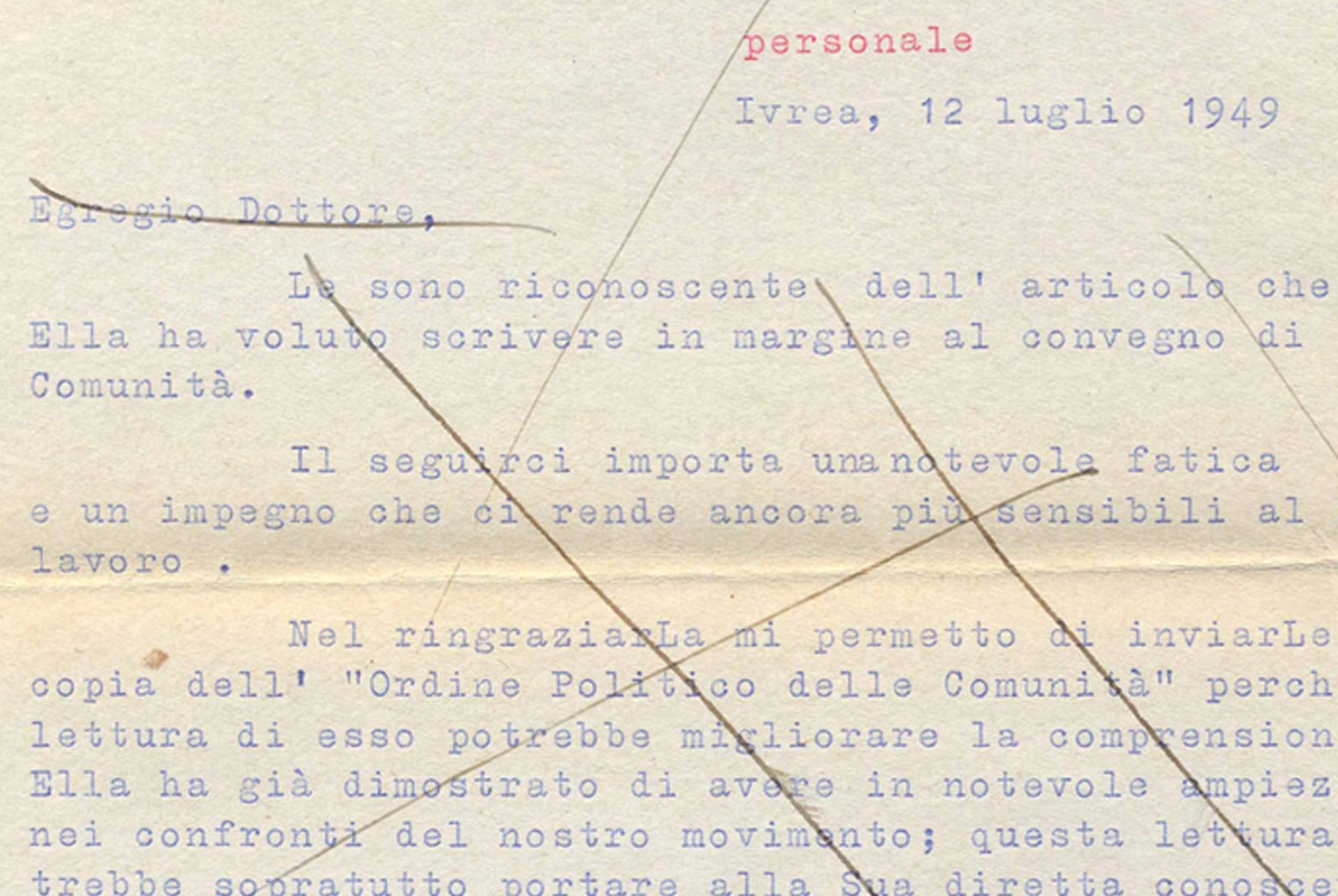 A Ivrea, in deposito presso l’Associazione Archivio Storico Olivetti, sono conservati gli archivi di Adriano Olivetti, di Camillo Olivetti e di Roberto Olivetti, l’emeroteca di Adriano Olivetti e Camillo Olivetti, l’archivio del Movimento Comunità e delle Edizioni di Comunità, l’archivio e la biblioteca di Ludovico Quaroni, l’archivio di Georges Friedrich Friedmann; altri fondi e archivi aggregati.